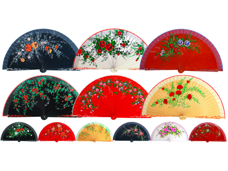 Abanico 1500 mad pint flores 1 cara surt color 23cm