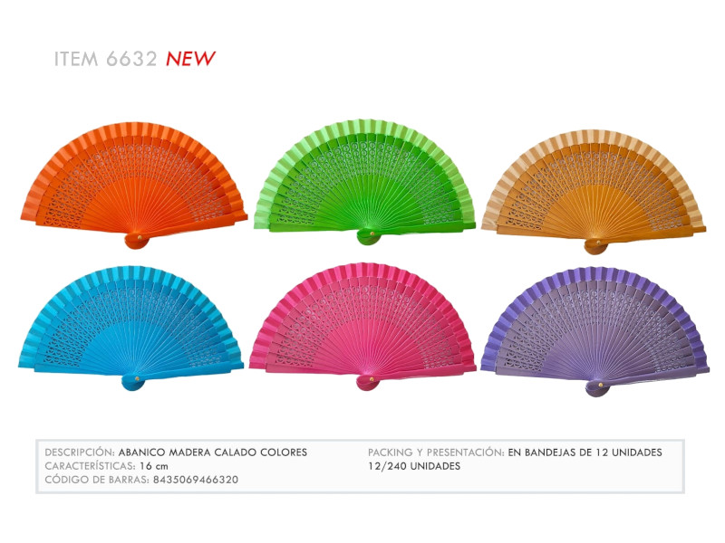 Abanico 6632 madera calado colores 16 cm
