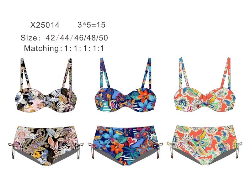 Bikini de mujer con copa con aros, tirantes anchos y braguita alta con frunces laterales para un ajuste cómodo y favorecedor.