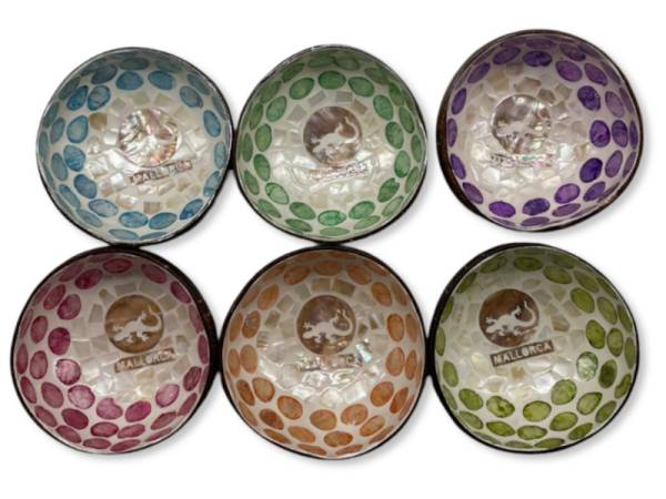 Cuencos coco nácar puntos colores surtidos Mallorca
