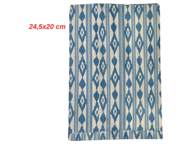 Bolsas de papel resistentes con estampados de flores en tonos rojo y azul. Tamaño 24,5 x 20 cm. Cada paquete contiene 100 unidades.