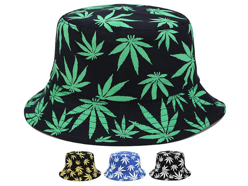 Gorro estilo bucket con diseño de hojas grandes, disponible en varios colores. Perfecto para un look fresco y desenfadado, ideal para el verano y festivales.