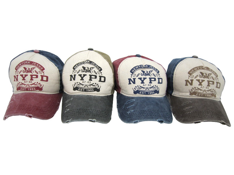 Diseño inspirado en el look neoyorquino con bordado frontal y acabado desgastado. Vienen en surtido de 12 unidades en varios tonos retro.