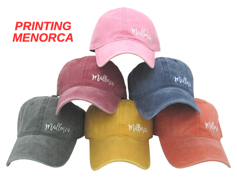 Gorras con la palabra “Menorca” bordada en el lateral frontal, con visera curva y acabado lavado. Diseño sencillo y moderno, disponible en colores combinados como rosa, burdeos, mostaza, azul marino, coral y gris. Perfectas como recuerdo de la isla o para uso diario.