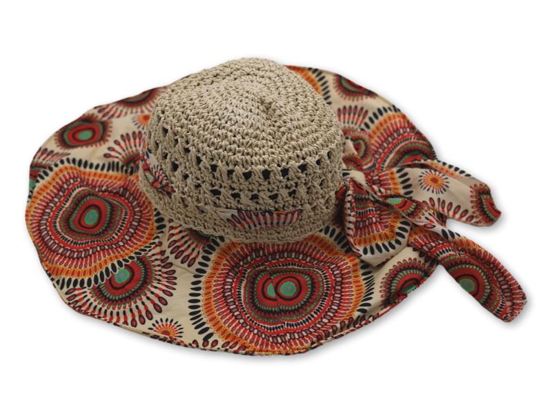 Sombrero de Yute con Ala de Tela Mandala