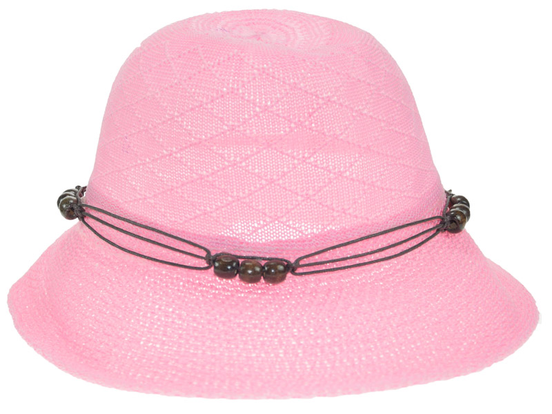 Pamela tipo capulina confeccionada en material ligero y transpirable, en un alegre color rosa. Decorada con un delicado adorno de cordón negro y abalorios en tonos naturales, aporta un toque bohemio y elegante a tus looks de verano. Ideal para protegerse del sol en la playa, en el campo o en cualquier salida al aire libre. Pack de 12 unidades.