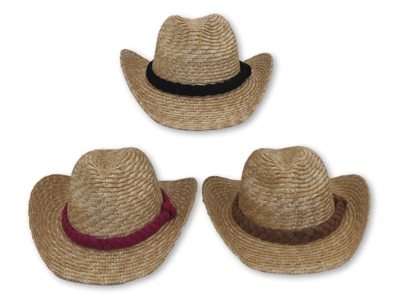 Sombrero cowboy de paja con trenza decorativa