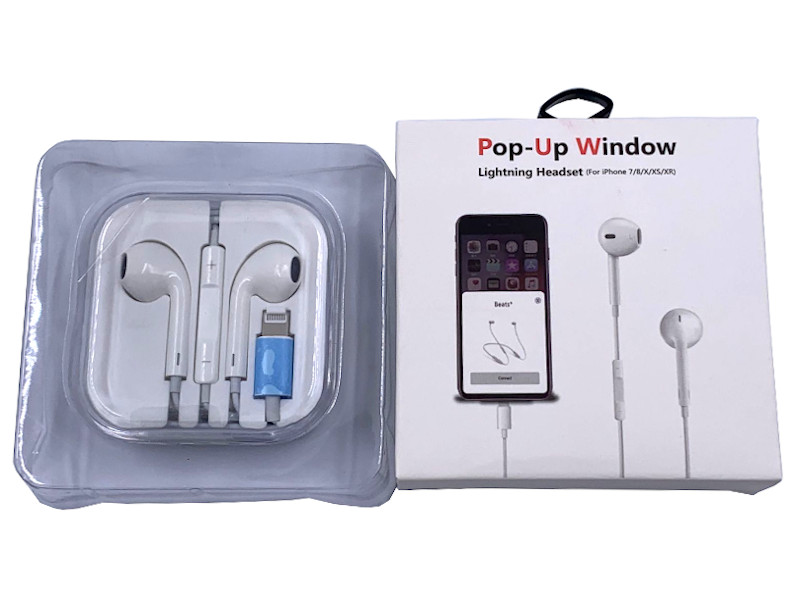 Auriculares con conexión Lightning compatibles con iPhone (7/8/X/XS/XR). Incluyen control de volumen y micrófono integrado. Se emparejan fácilmente mediante ventana emergente para una conexión inmediata y sin complicaciones.