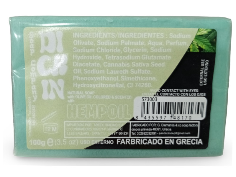 Pastilla de jabón enriquecida con aceite de semilla de cannabis, ideal para nutrir y suavizar la piel de forma natural. Con aceite de oliva y un delicado aroma herbal, es una opción refrescante y suave para el uso diario. Producto artesanal fabricado en Grecia.