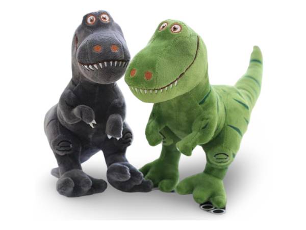 Adorables peluches de dinosaurios T-Rex en colores verde y gris, con detalles bordados que capturan su simpática expresión. Ideales para regalar o decorar, estos dinosaurios de peluche destacan por su suavidad y divertido diseño, perfectos para acompañar a los pequeños en sus aventuras prehistóricas. Packs de 4 unidades.