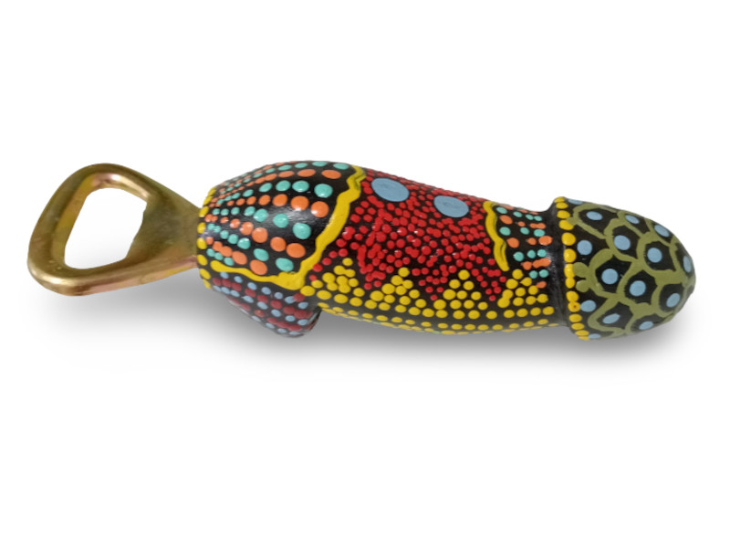 Etnico abrebotellas pene madera painting 12 cm