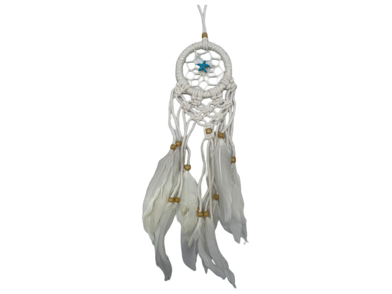 Atrapasueños blanco con estrella turquesa 6 cm