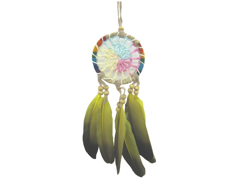 Atrapasueños arcoíris con plumas verde lima 6 cm