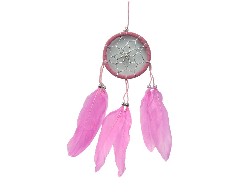 Atrapasueños rosa claro con plumas y aro a juego 6 cm