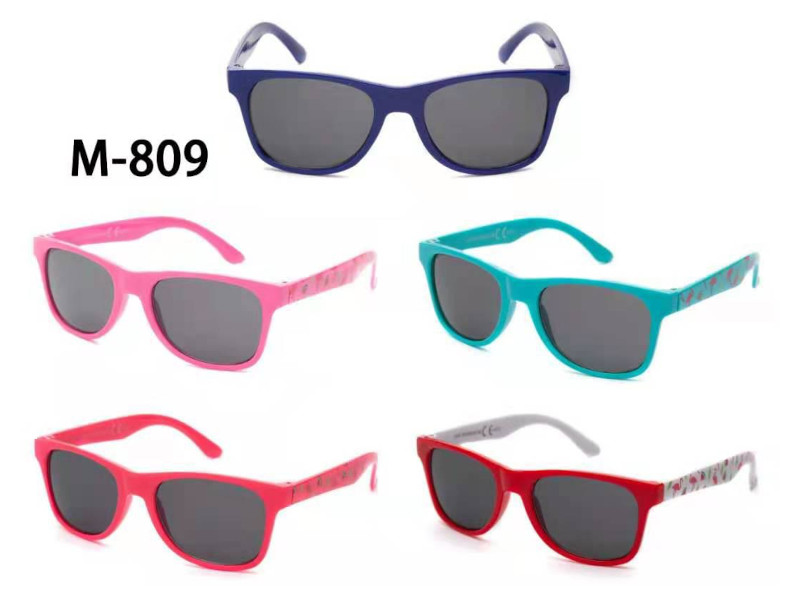 Diseño alegre con monturas en colores sólidos y varillas decoradas. Lentes oscuras que combinan estilo y protección para los más pequeños.
