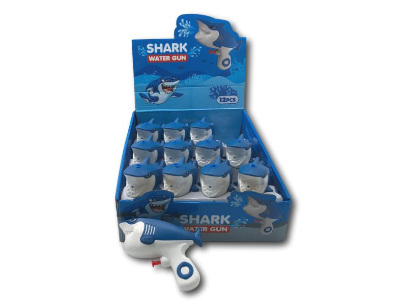 Original pistola de agua con diseño de tiburón azul, perfecta para los más pequeños. Fácil de usar, ideal para juegos refrescantes al aire libre en verano.