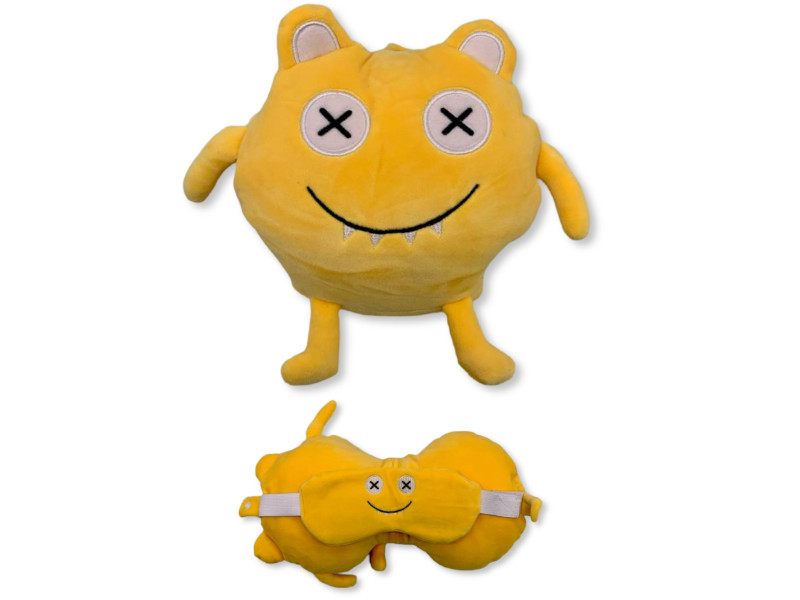 Cojín y antifaz de peluche monstruo amarillo