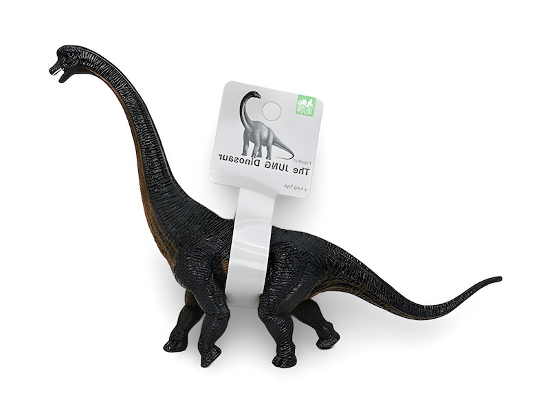 Figura de brachiosaurio en color negro con textura realista y un tamaño de 25 cm que resalta su imponente silueta. Fabricada en plástico resistente, esta pieza es ideal como recuerdo temático, decoración o complemento de colección para los apasionados del mundo jurásico.