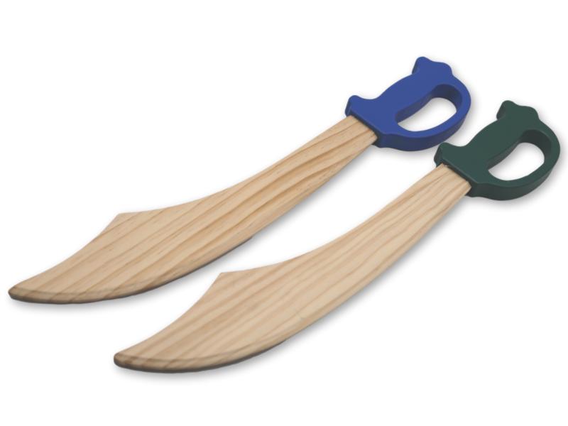 Espada de madera natural de 50 cm con mango pintado en colores variados. Diseño de pirata ideal para juegos y disfraces infantiles. Fabricada con materiales resistentes y seguros. Pack: 12 unidades.