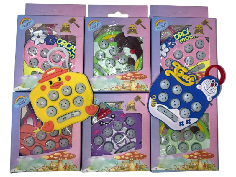 Diviértete con este juego portátil de memoria y rapidez visual. Presiona los botones con luces siguiendo la secuencia correcta para avanzar niveles. Incluye sonidos y varios modos de juego, ideal para estimular la concentración. Set de 25 unidades. Viene en diferentes diseños coloridos y llamativos, como patito, gato, flor o arcoíris. Requiere pilas (incluidas). Recomendado para mayores de 3 años.
