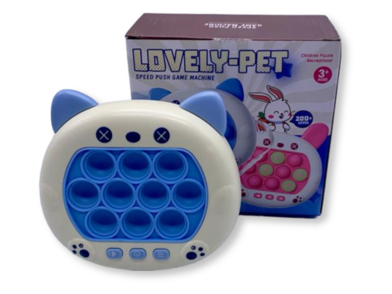 Un giro moderno al clásico Pop It: este juego electrónico en forma de animalito con orejitas azules pone a prueba la velocidad y coordinación con más de 200 niveles. Ideal para niños a partir de 3 años, combina luces, sonidos y botones interactivos para hacer del juego una experiencia aún más divertida. Perfecto para estimular la concentración y la motricidad fina mientras se entretienen durante horas. ¡Un compañero ideal para llevar a cualquier parte! Funciona con pilas (no incluidas).