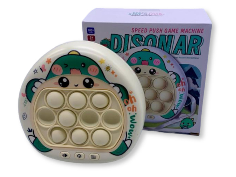 Este original juego electrónico combina luces, sonidos y botones tipo Pop It en un divertido diseño de dinosaurio. Ideal para fomentar la coordinación y concentración en niños a partir de 3 años. Cuenta con más de 100 niveles y varios modos de juego para no aburrirse nunca. Su tamaño compacto lo hace perfecto para llevarlo a cualquier parte. Funciona con pilas (no incluidas). Set de 3 unidades.