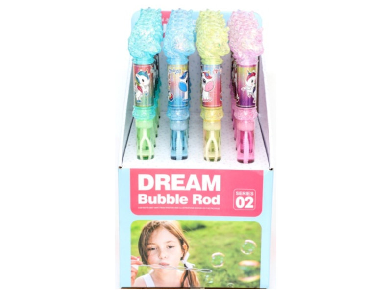 Varitas de pompas decoradas con adorables unicornios y tapa en forma de cabeza de unicornio translúcida. Emiten luz LED al agitarse, aportando un efecto mágico que encantará a los niños. Perfectas para fiestas, celebraciones o como detalles para regalar. Edad recomendada: a partir de 3 años. Presentación: pack de 20 unidades surtidas. Funciona con pilas (no incluidas).