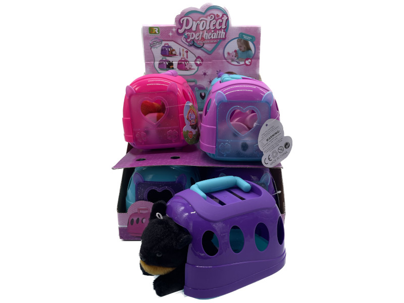 Divertido set compuesto por un transportín de colores variados y un tierno peluche en su interior. Perfecto para fomentar el juego simbólico y el cuidado de mascotas. Diseñado para niños a partir de 3 años. Se presenta en expositor de 8 unidades.