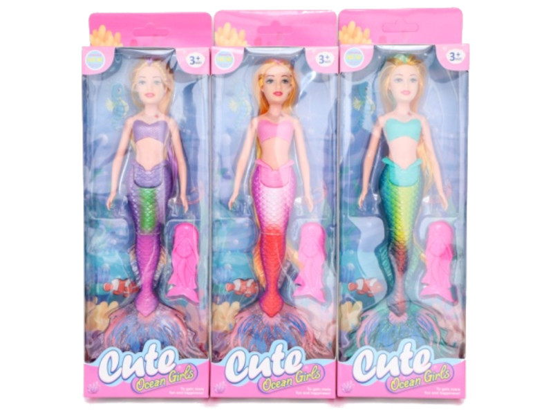 Elegantes sirenas con llamativos trajes de escamas en tonos arcoíris y peines incluidos. Diseñadas con detalles brillantes y cabellos largos para peinar. Pack de 6 unidades.A partir de 3 años.
