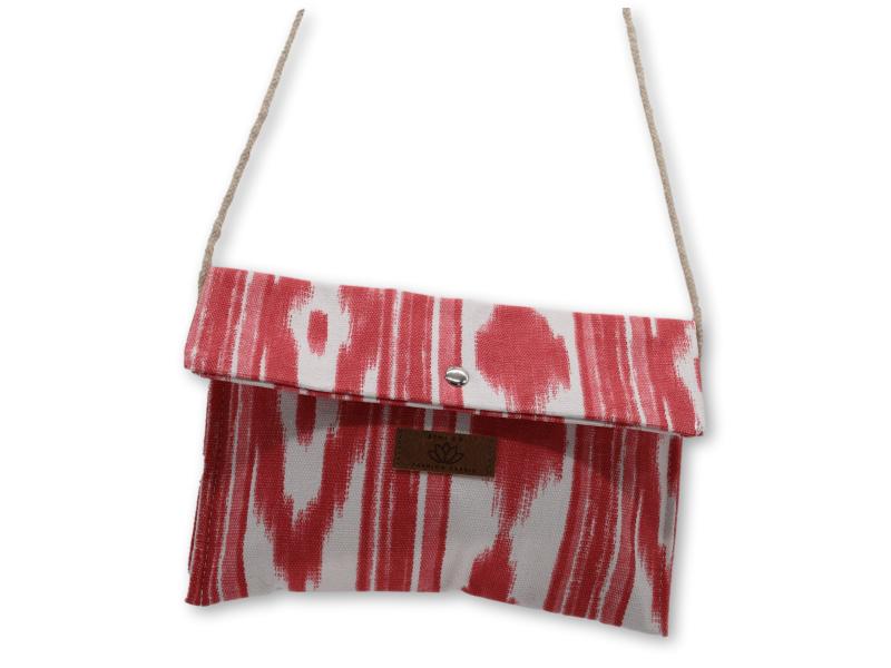 Bolso de 26×17 cm confeccionado en auténtico tejido de llengos mallorquinas en tonos rojo y blanco. Ideal para dar un aire mediterráneo a cualquier conjunto, con cierre de solapa y botón metálico y cordón fino para llevar cómodamente al hombro. Pack 6 unidades.