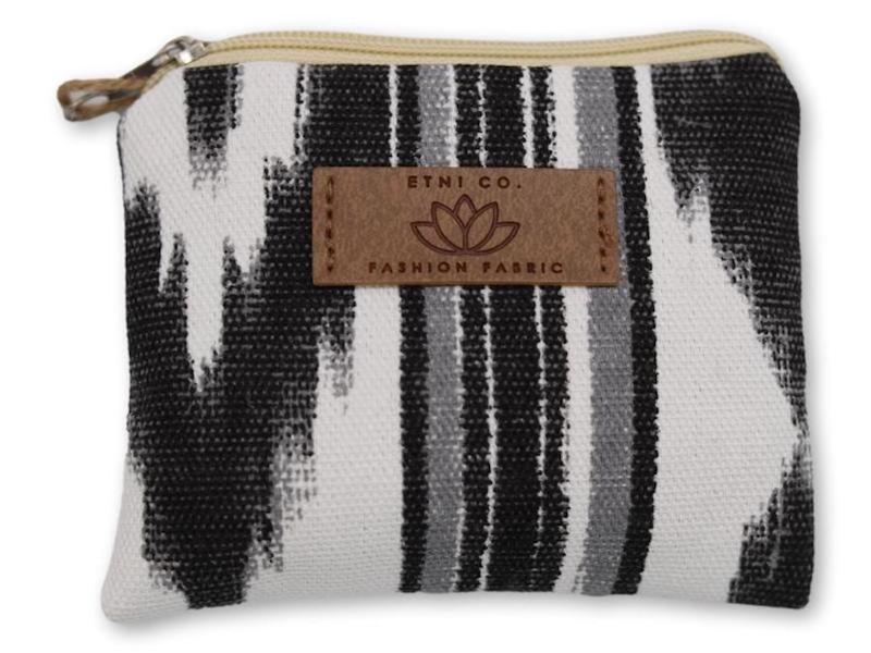 Monedero de tejido de llengos mallorquinas en tonos gris oscuro, ideal para monedas, llaves o pequeños objetos. Diseño compacto con cierre de cremallera. Medidas aproximadas 10,5×12 cm. Pack 12 unidades.