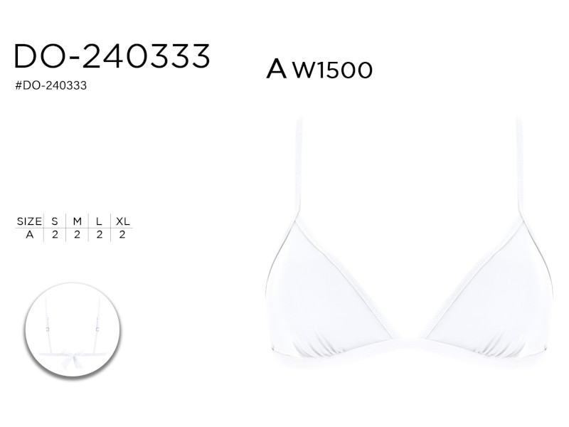 Top de bikini de corte triángulo con un diseño limpio y esencial. Tirantes finos, ajustables y espalda con lazada para un ajuste personalizado. Una opción versátil y atemporal perfecta para cualquier conjunto de baño.