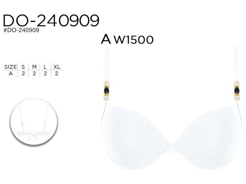 Top de bikini con aros y copas estructuradas para una sujeción óptima y realce natural. Decorado con elegantes perlas en los tirantes, aporta un toque sofisticado y chic. Cierre trasero con lazo ajustable para mayor adaptabilidad.