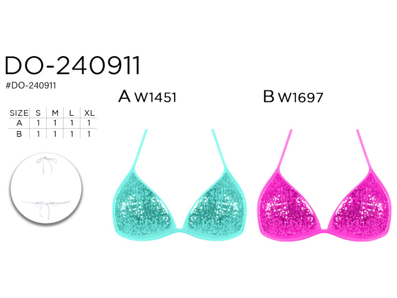 Top Bikini Triángulo con Lentejuelas Turquesa y Fucsia