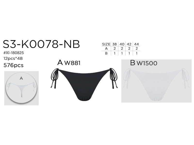 Braga de bikini de lazo lateral disponible en dos colores clásicos: blanco y negro. Diseño básico, favorecedor y muy combinable.