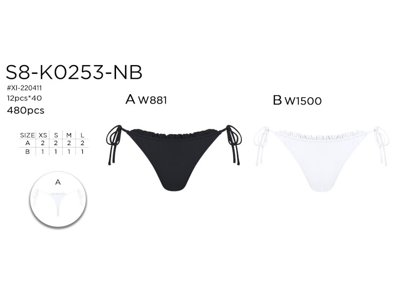Tanga de bikini con lazo lateral y delicado volante fruncido en el borde superior que añade un toque romántico. Diseño minimalista en colores neutros —ideal para combinar con cualquier parte superior.